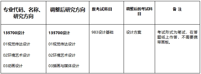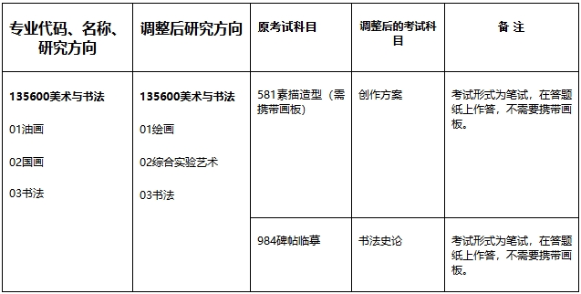 3.美术学方向业务课二“581素描造型”调整为“创作方案”,考试说明参考135600美术与书法;