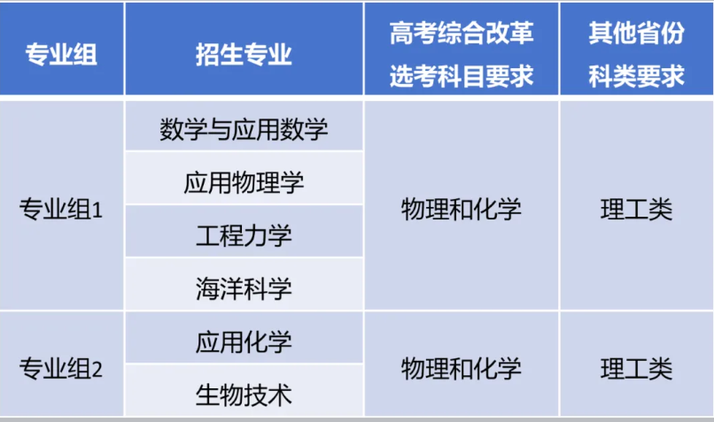 下面附上各组招生专业以及新高考地区考生的选科要求: